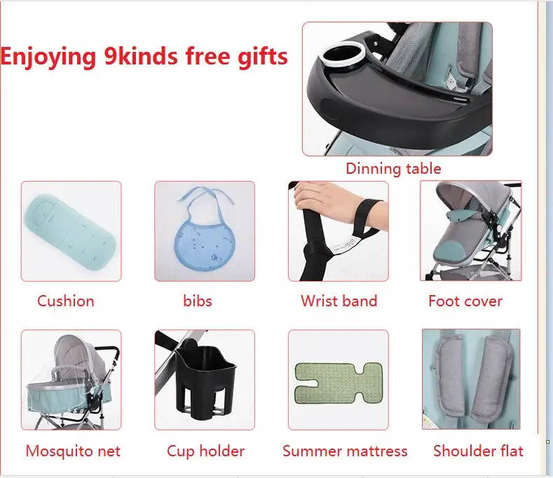 Особенности:1. RЭмоциональный поручень, направление changeble.2.Очень Большой спальный корзина3.Высокая Земля пейзаж4. Легко раскладывается на кнопке5. Бесплатная 8 шт. подарки6.Габариты: высота: 104 см; длина: 100 см; ширина: 90 см7.Max Ширина 100 см8.Авиационный алюминиевый сплав Frame9.Теплые ножки чехла, защищают детские ноги зимой.10.Размер в сложенном виде: длина: 95 см, ширина: 45 см.Покупки удовольствие от свободных подарков * 2 (разные коляски цвета с разным подарочным цветом)